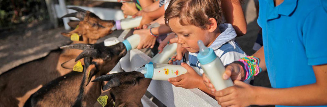 Dans la Mini-Ferme, on enjambe les barrières pour caresser les animaux et on donne le biberon aux bébés chevreaux, agneaux et veaux!